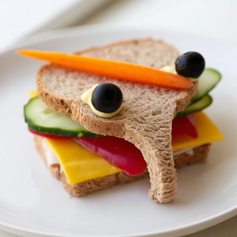 - Place two olive halves on each sandwich for eyes use a dab of mayonnaise to adhere if needed