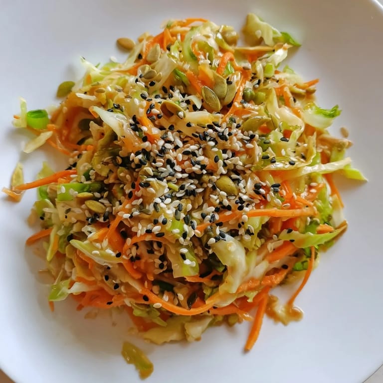 This slaw is best served within a few hours of making it, when the vegetables are still crispy and the seeds haven't had time to soften. You can make it up to a day ahead and keep it in the fridge, but add the seeds just before serving if you want them to stay crunchy. It's perfect alongside grilled fish or chicken, nestled into grain bowls, or eaten straight from the bowl as a light lunch with a soft boiled egg on top.