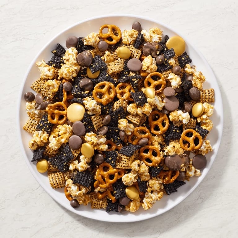 This Gold and Black Midnight Snack Mix is a perfect blend of flavors to celebrate any festive occasion.