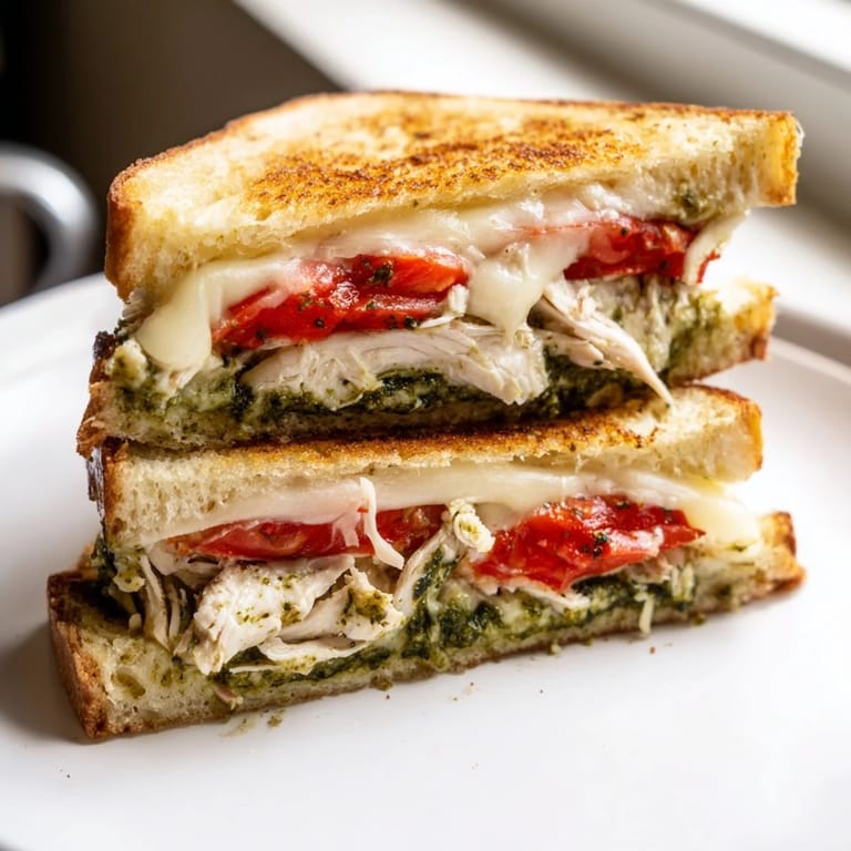 Save I was halfway through making a regular grilled cheese when I spotted some leftover rotisserie chicken and a jar of pesto in the fridge. Something just clicked. That first bite, with the warm basil hitting the melted mozzarella and tender chicken, turned a quick lunch into the kind of sandwich I could not stop thinking about.