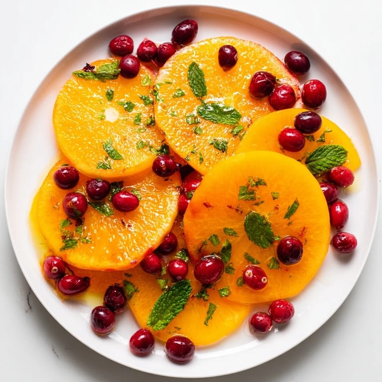 Save A vibrant, refreshing winter salad featuring juicy orange slices and tart cranberries, perfect for brightening up cold-weather meals.