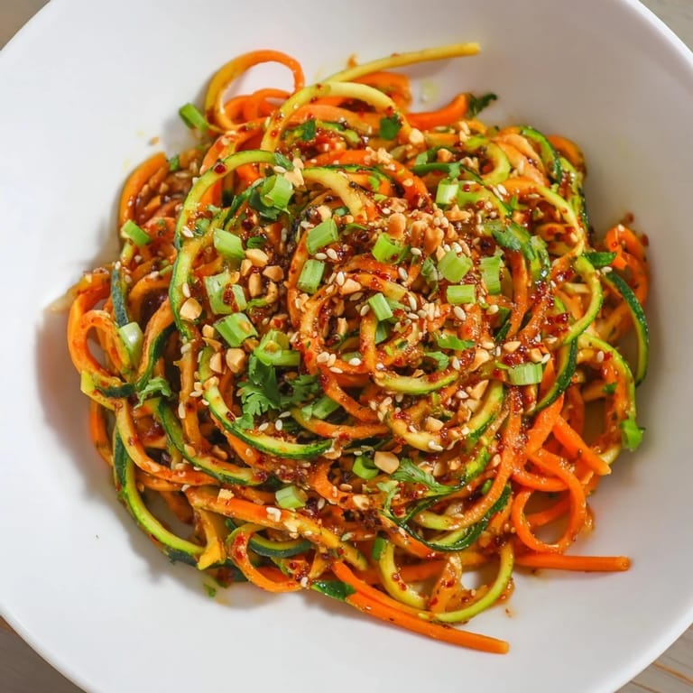 Save I discovered this bowl completely by accident on a sweltering afternoon when my refrigerator felt like my only friend and I had nothing but cucumbers, a bottle of chili crisp, and stubborn determination. What started as me frantically spiralizing vegetables became this bright, fiery dish that somehow tasted like summer felt—crisp, bold, and alive. The first bite made me understand why this recipe took over everyone's feeds; it's the kind of thing you make once and suddenly crave constantly.