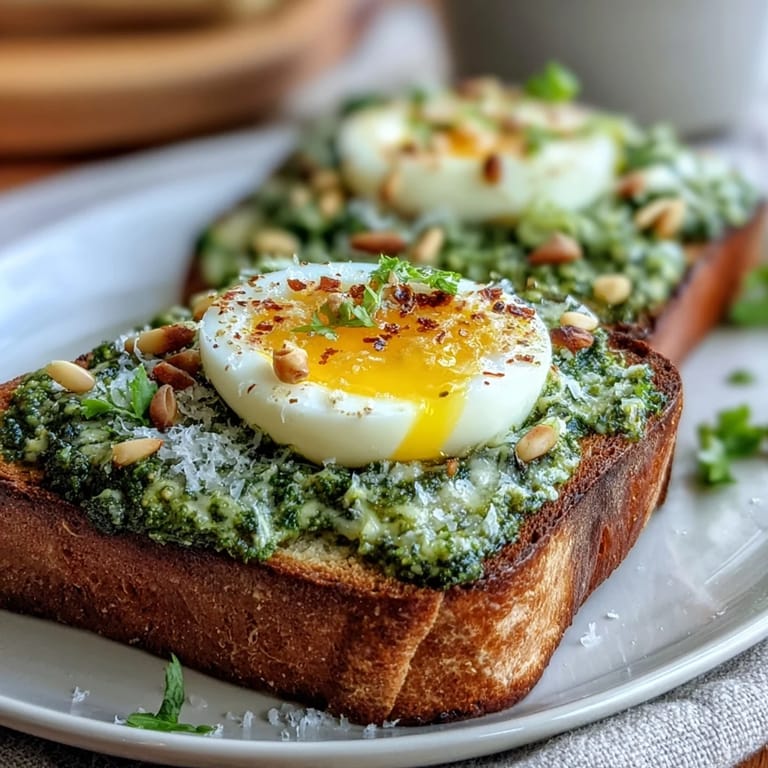 I made this for a friend who'd just moved into a new place with barely any cooking equipment, and she sat at her tiny kitchen counter just watching the eggs cook like they were the most interesting thing in the world. When she took that first bite and the yolk ran across the pesto, she actually closed her eyes. That's when I knew this wasn't just breakfast—it was the kind of simple, honest food that makes people feel taken care of.