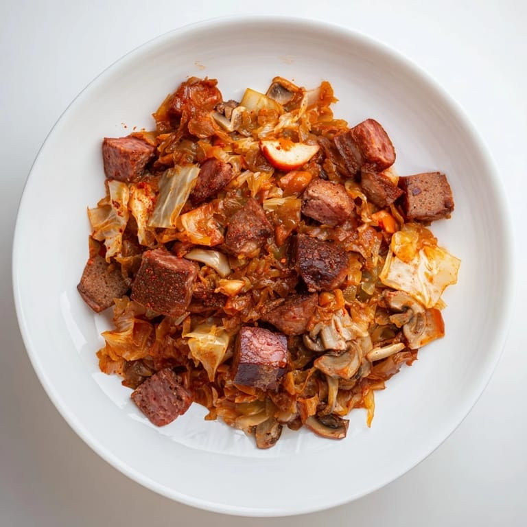 Save A hearty Polish classic reimagined with a spicy Sriracha kick. This fusion dish combines smoky meats, tangy sauerkraut, and a bold, warming chili heat—perfect for cold winter nights.