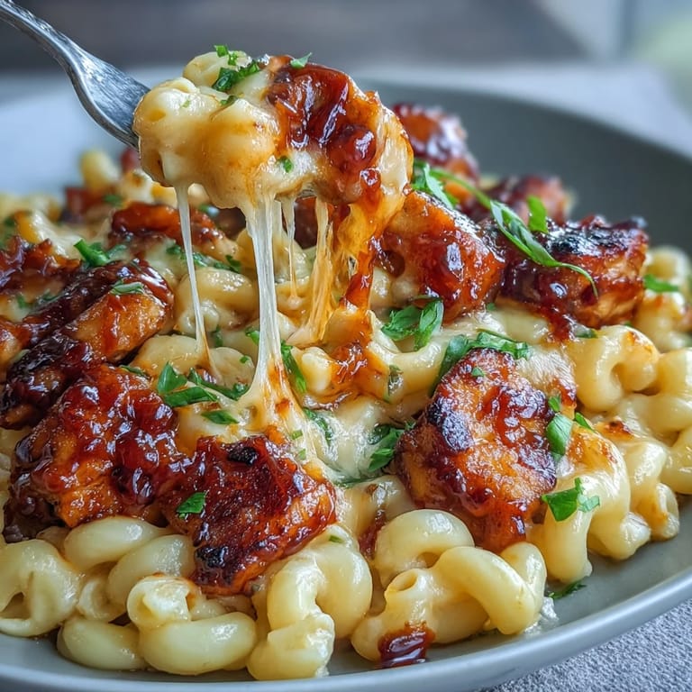 Save Experience the ultimate comfort food with this Sticky Honey BBQ Chicken Pasta Skillet. Inspired by viral TikTok food trends, this dish combines the sweetness of honey BBQ glazed chicken with the creamy, indulgent texture of cheddar macaroni and cheese, all prepared in a single pan for a stress-free weeknight dinner.